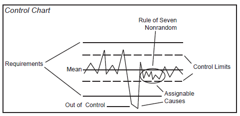 A graphic display of process data over time and against established control limits, and that has a centerline that assists in detecting a trend of plotted values toward either control limit.