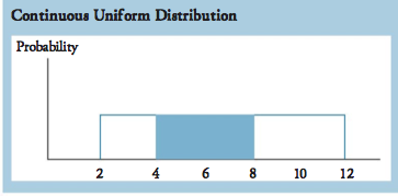 Probability between 4 and 8 = 8-4/12-2 = 40%