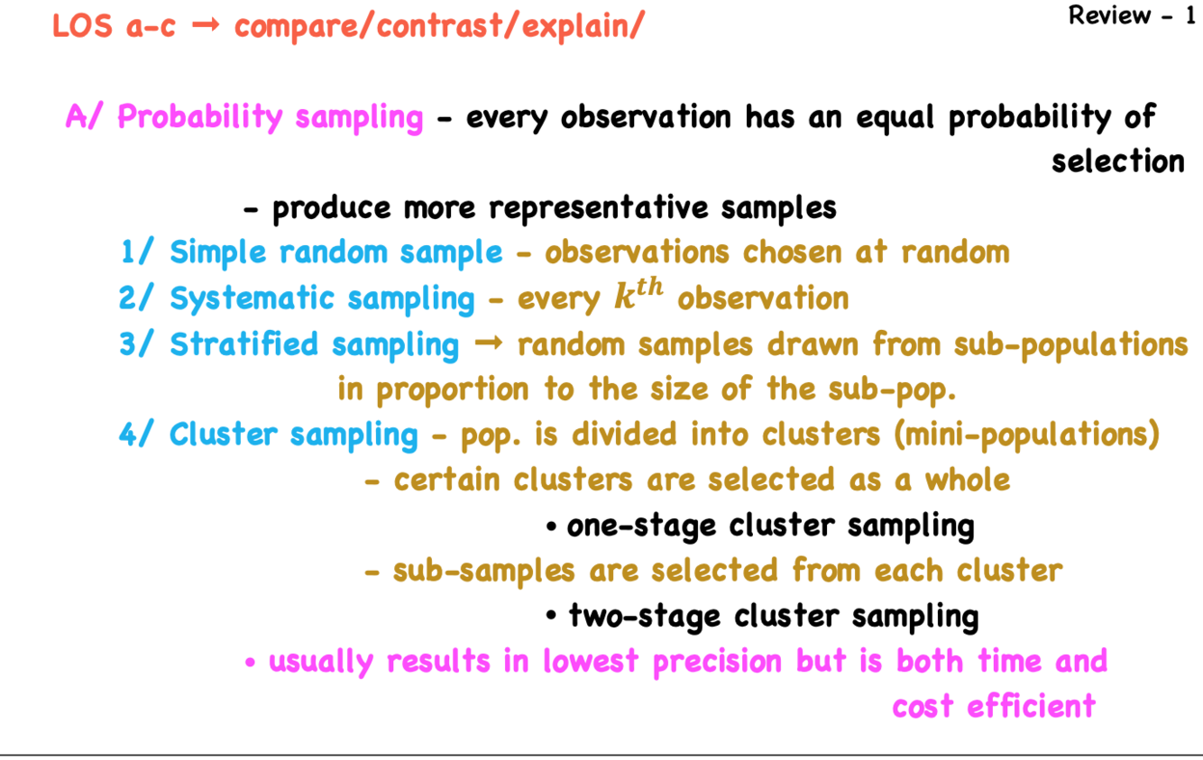 What is probability sampling, simple random, systematic, stratified and cluster?