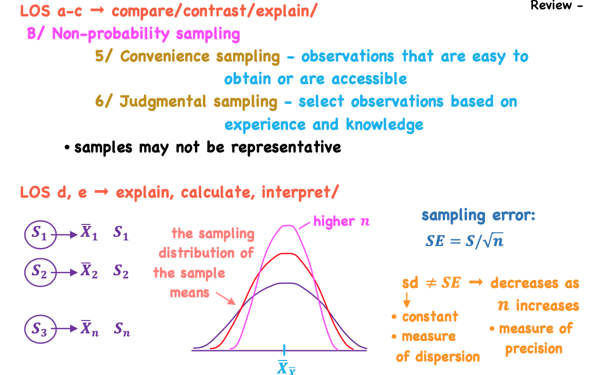What is convenience sampling, judgmental sampling, what is sample error and sampling distribution of the sample means?