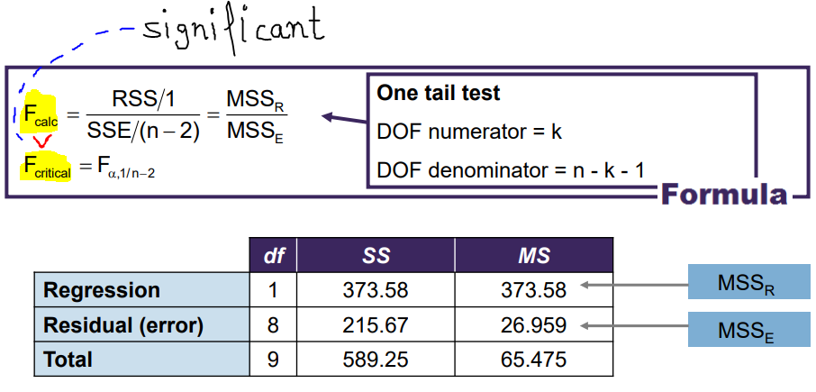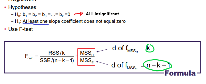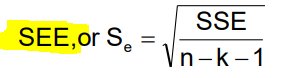 k = # of independent variables (single regression: 1)