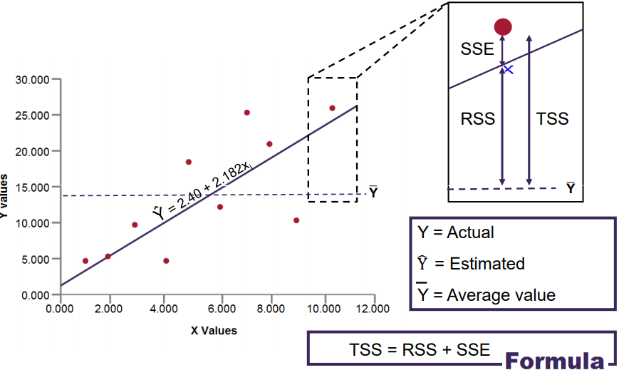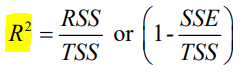 R2 = 1 - SSE/ TSS (if SSE = 0, R2 = 1 > perfect fit)
