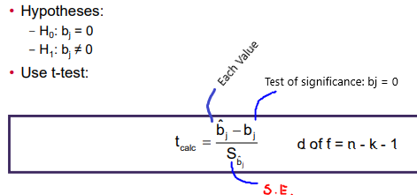 TCalc > TCrit (in absolut) = REJECT NULL (H0: b1 = 0)