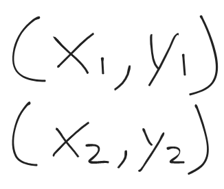 What is the formula for finding the midpoint of a line between 2 points?