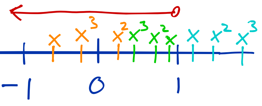 If x is negative, x3 is negative & x2 is positive