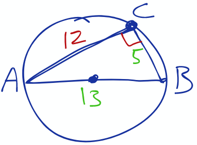 13^2 - 5^2 = 144 = (AC)^2 –> AC = 12