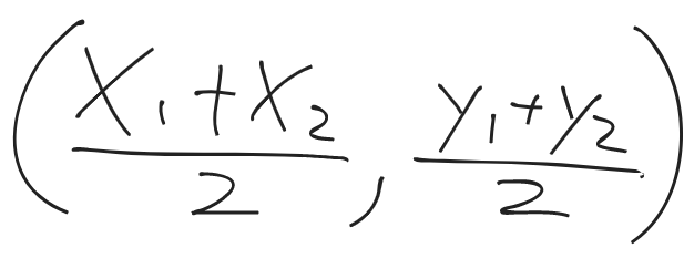 What is the formula for finding the midpoint of a line between 2 points?