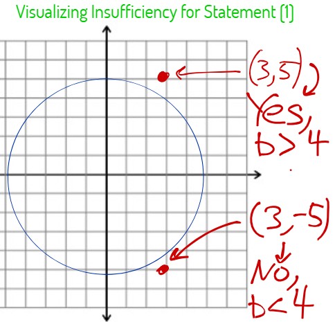 (1) “lies outside the circle” translates to “greater than” –> x2 + y2 > 25