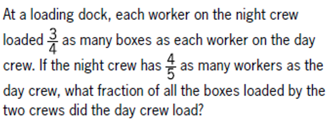 Read carefully! Question asks what fraction of the TOTAL is the day crew