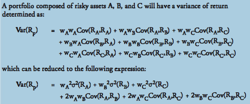 The formula is expanded and then simplified. Note that Cov(Ra, Ra) is reduced to σ2(Ra), as covariance of a variable with itself is its VARIANCE (standard deviation squared)
