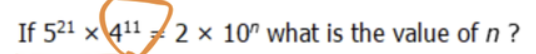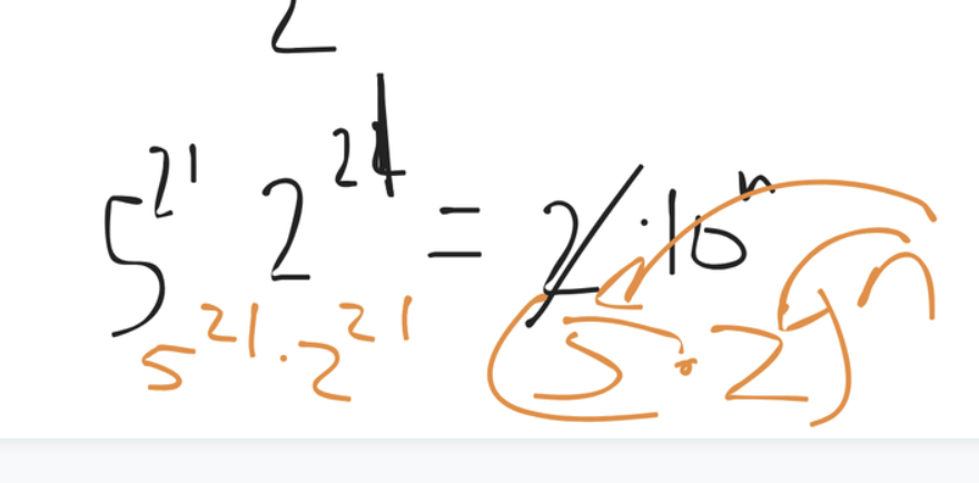 Process: 1) split 10 into factors (5*2)^n => (5^n * 2^n) so we have common base 2) solve for n