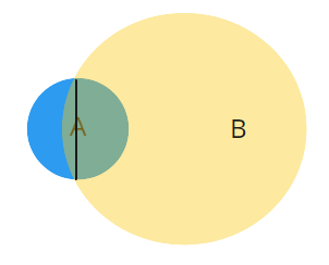 Over half of the A circle is within the B circle.