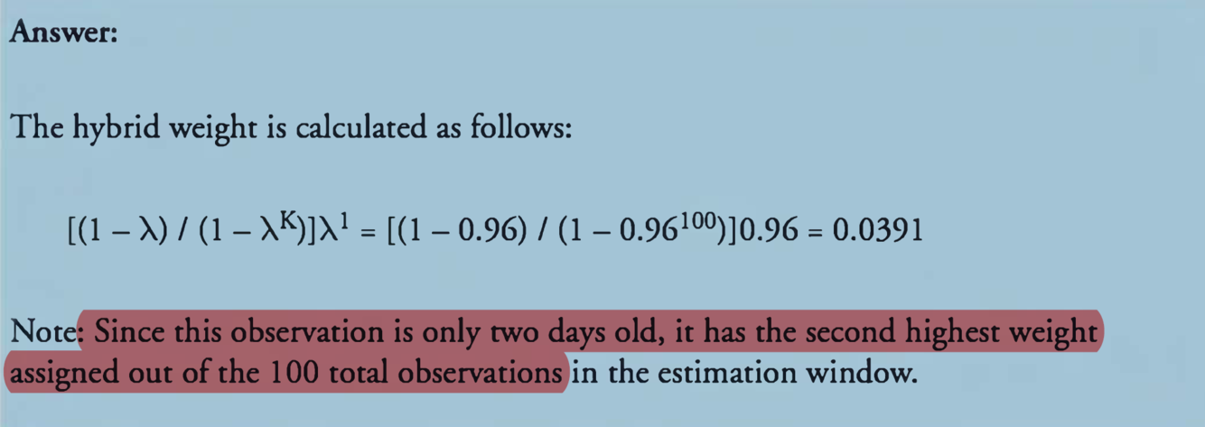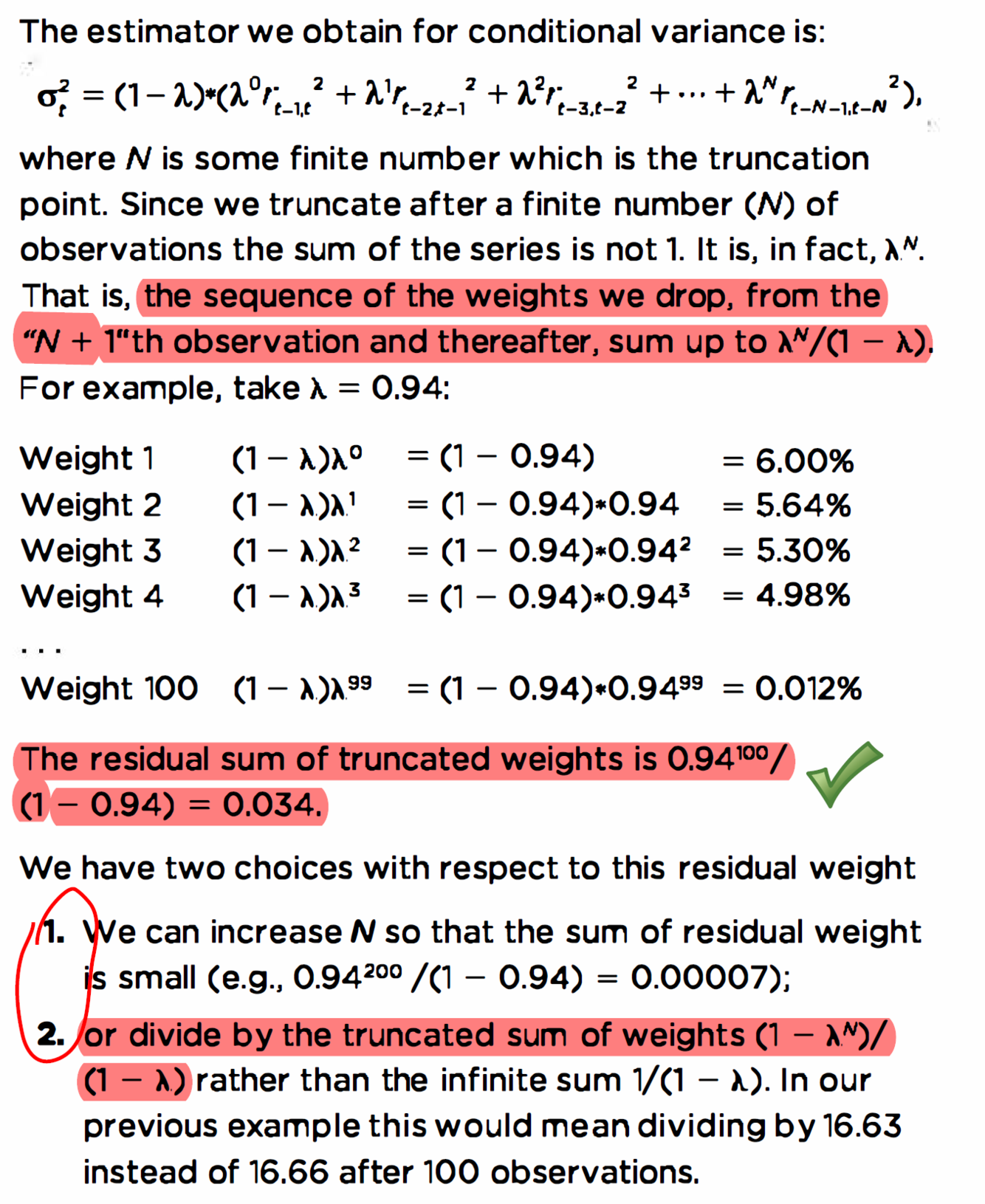 Higher weight means our belief will not changed dramatically from the last period’s volatility even new information arrived.