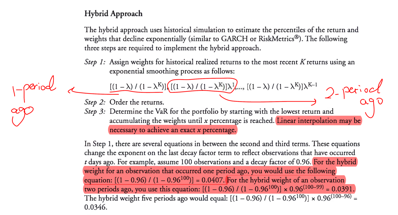the weight of the asset in the portfolio is calculated by today’s weight, regardless of the time (so the weight of an asset in the portfolio k days ago is determined by the weight today)