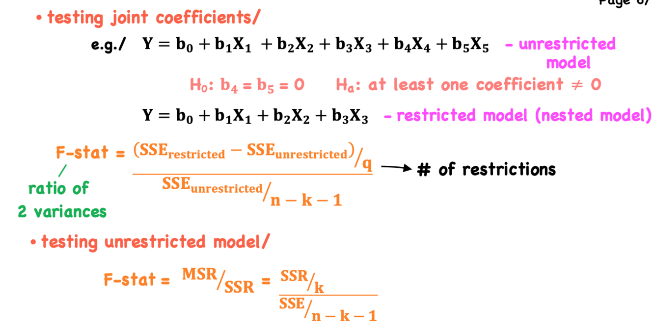 What is the null and alternative Hypothesis for f-test of joint significance?