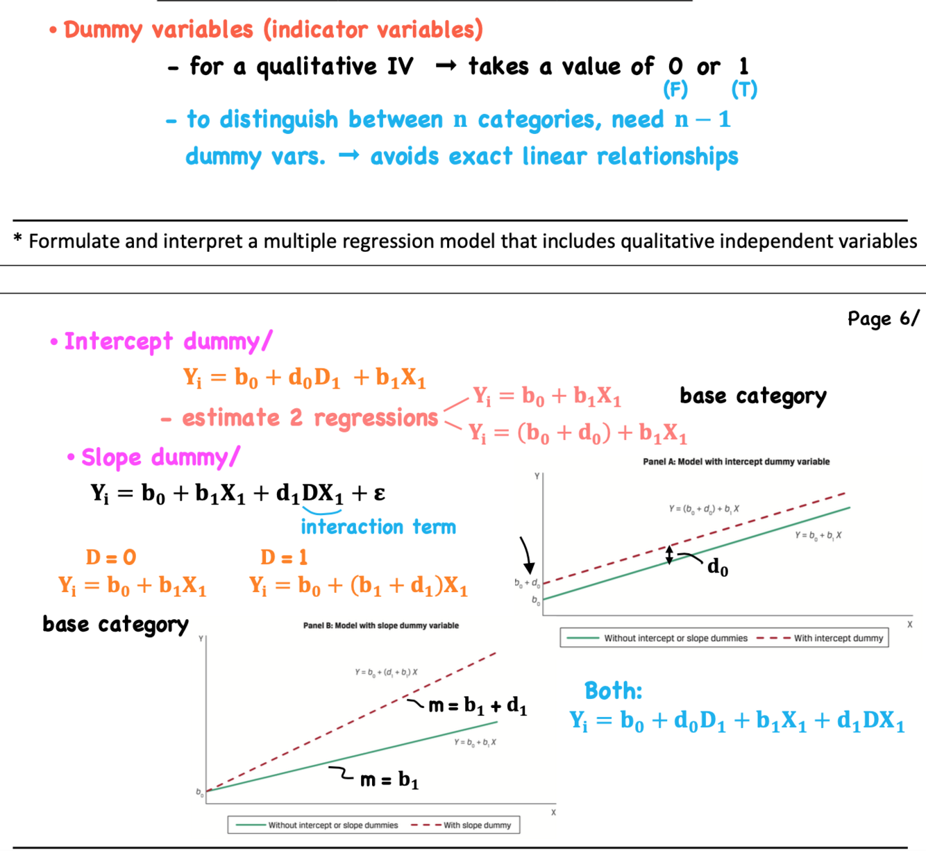 Describe a dummy variable, its uses and an intercept and slope dummy?