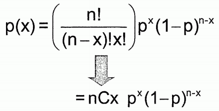 (1) The probability of exactly x successes in n trials, given just two possible outcomes (success and failure)