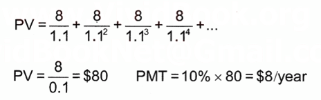 Preferred stock pays $8/year forever, with 10% rate of return. What is it’s present value?
