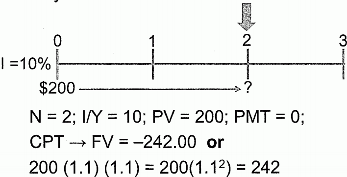 FV of $200 invested for 2 years at 10% interest rate