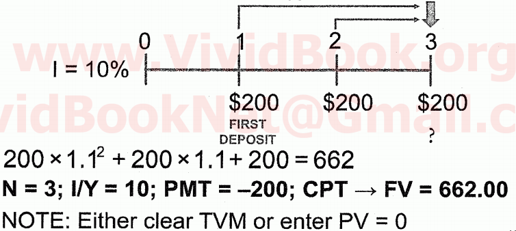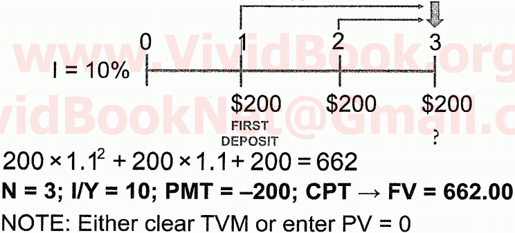 FV of $200 received at beginning of each year for 3 years at 10% interest