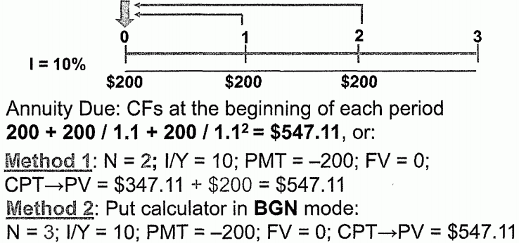 PV of $200 received at the start of each year, for 3 years at 10%