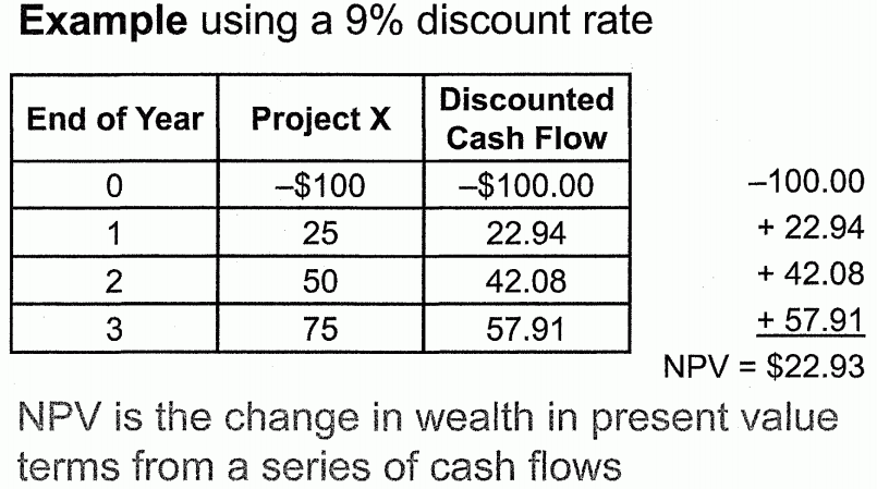 Net present value: the sum of present values of a series of cash flows