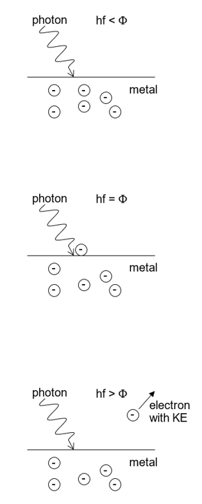 Light incident on a metal surface causes electrons to be emitted from the surface