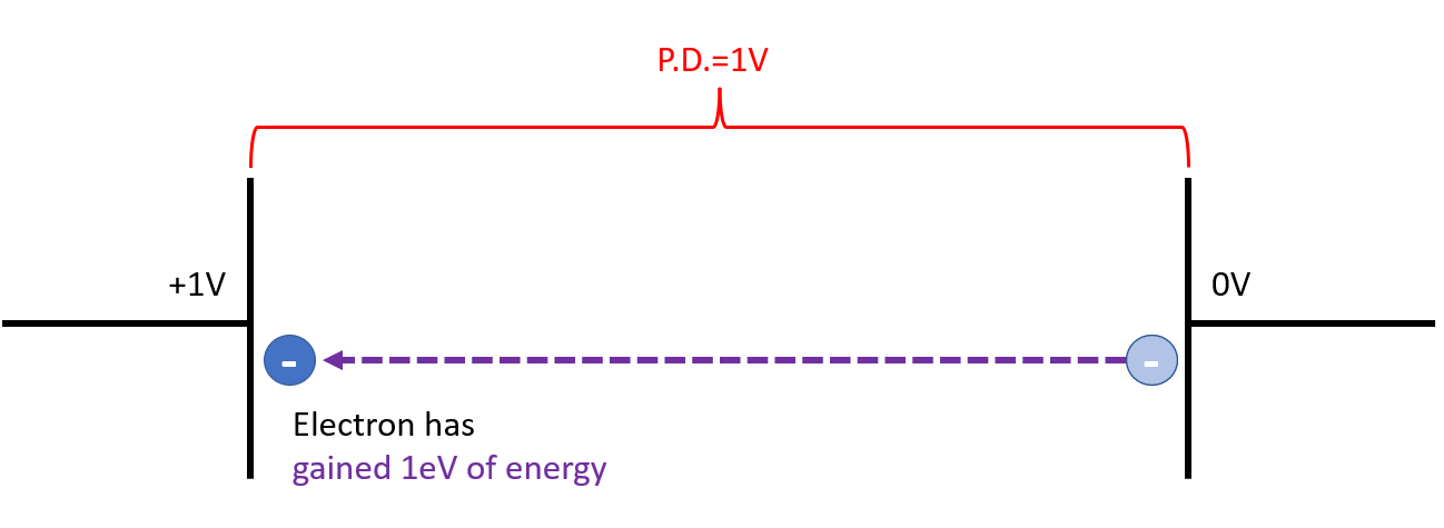 The kinetic energy gained by 1 electron passing through a potential difference of 1 volt