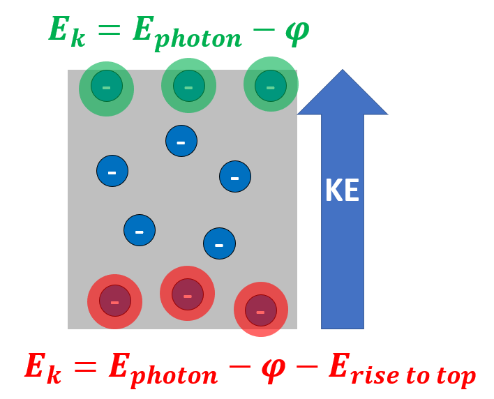 (Electrons at the very top of the surface are emitted with maximum kinetic energy)