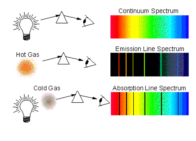 3. Absorption - Produced by a continuous spectrum passing through a cold gas