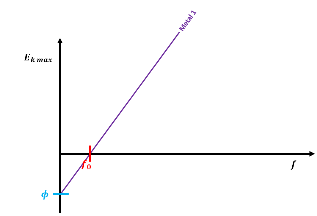 How is the work function (φ) related to the threshold frequency (f0) of a metal?