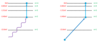 2. The electrons emitted due to the blue light have a greater maximum kinetic energy (because blue photons have a greater energy from E=hf)