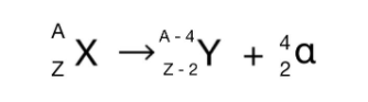 In alpha decay, the atomic nucleus emits an alpha (ɑ) particle, which consists of 2 neutrons and 2 protons. The summary equation for alpha decay can be denoted by the equation.