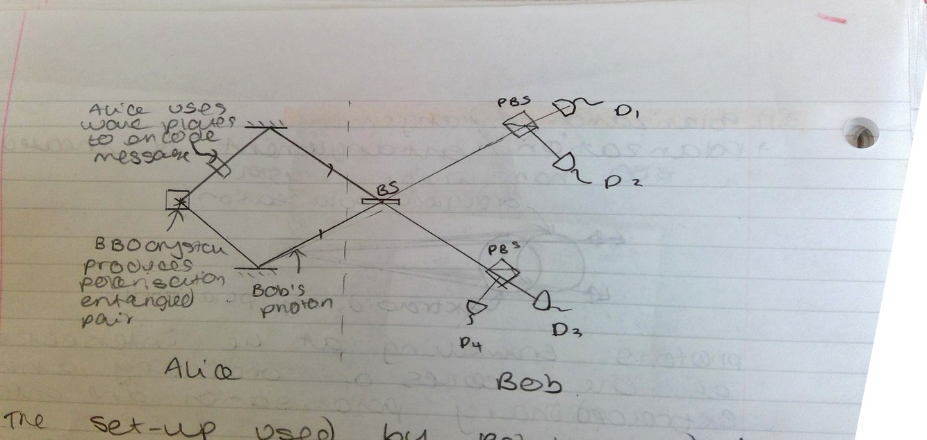 Sketch a diagram of quantum dense coding with a partial Bell state analyser