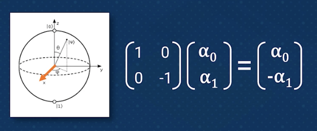 Analogous to the NOT gate in classical computing, it rotates the state about the Bloch sphere X, Y, or Z axis by 180 degrees.