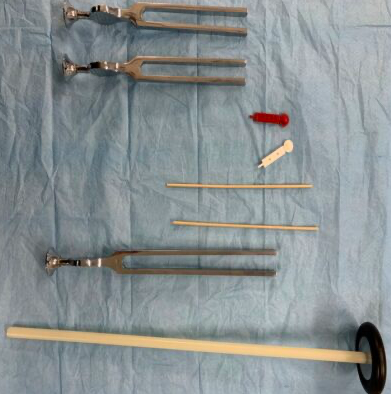 512 Hz tuning fork: Weber’s + Rinne’s