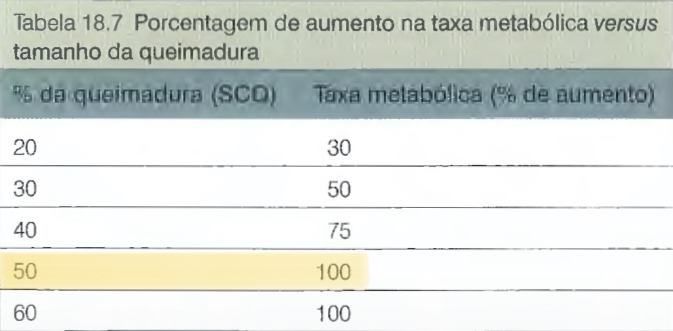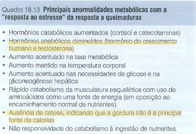 Principais anormalidades metabólicas com a “resposta ao estresse”da resposta a queimaduras
