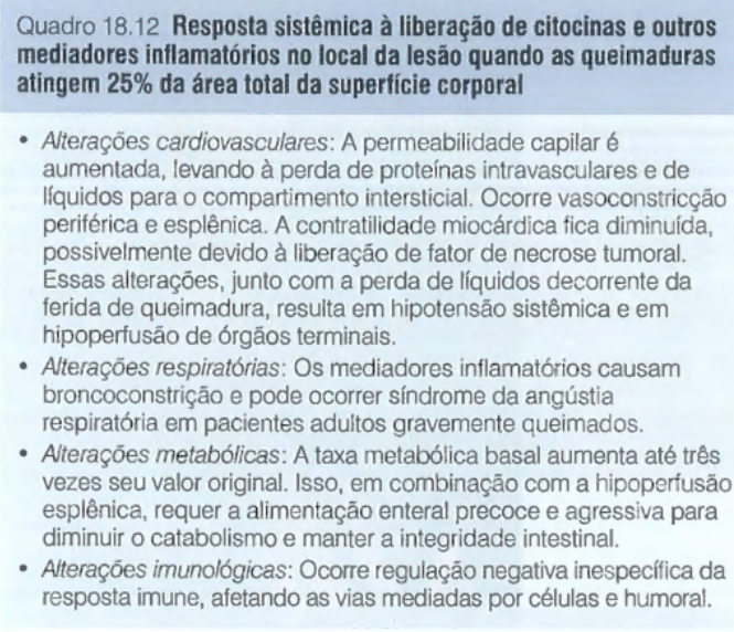 Resposta sistêmica a liberação de citocinas e outros mediadores inflamatórios no local da lesão quando as queimaduras atingem 25% da área total da superfície corporal