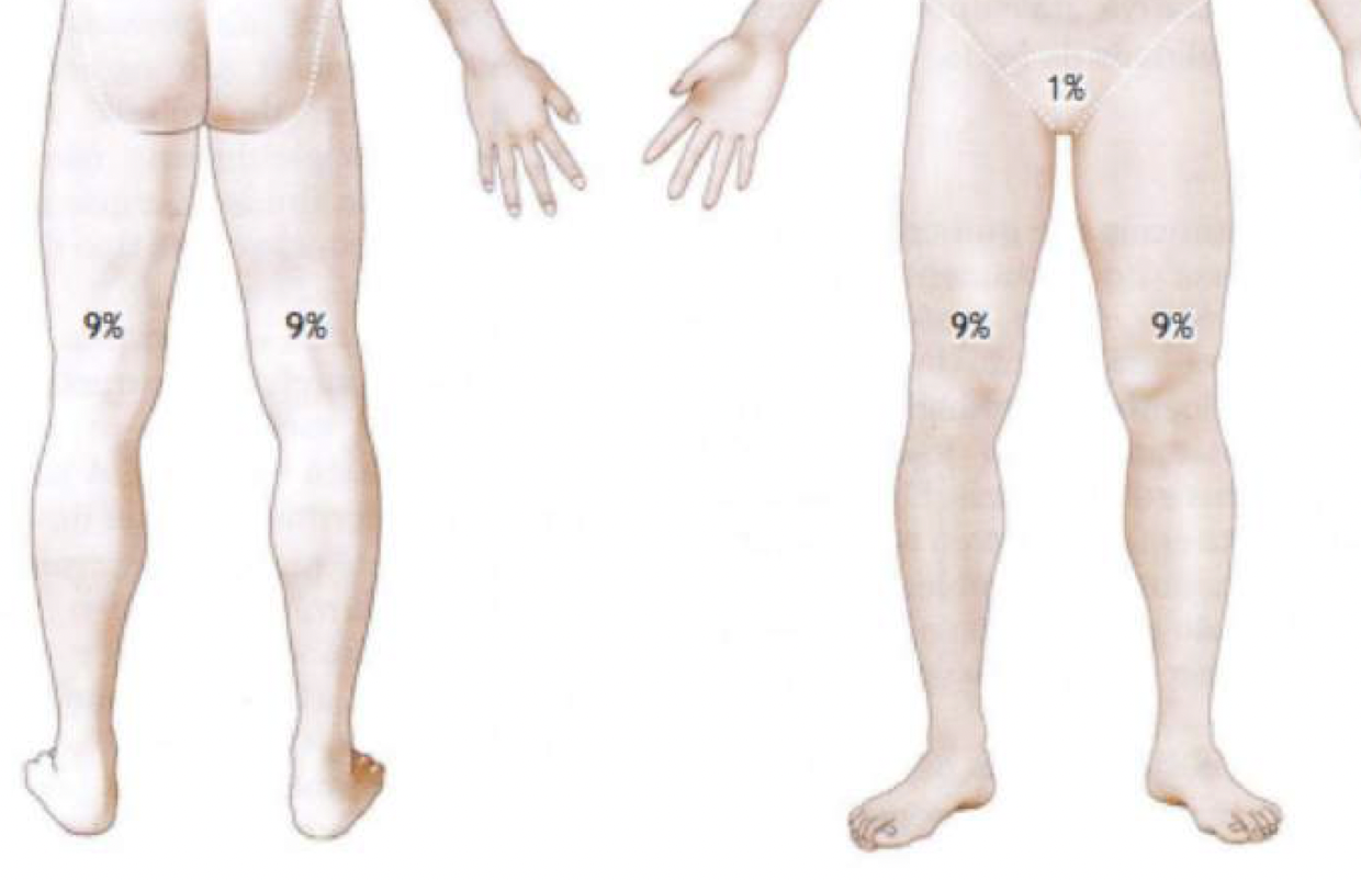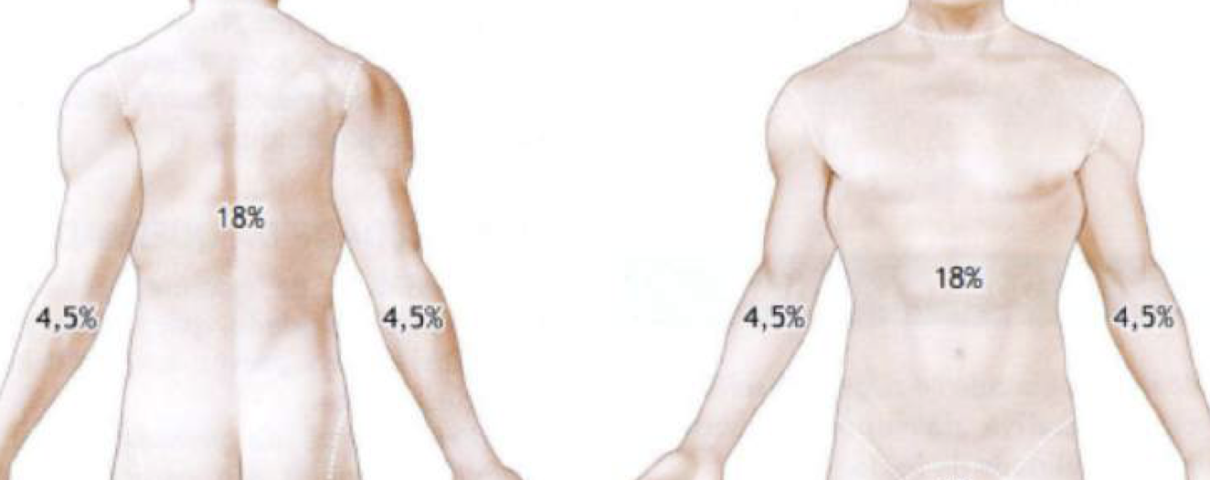 Regiões na regra dos 9 que correspondem a 1% de SCQ