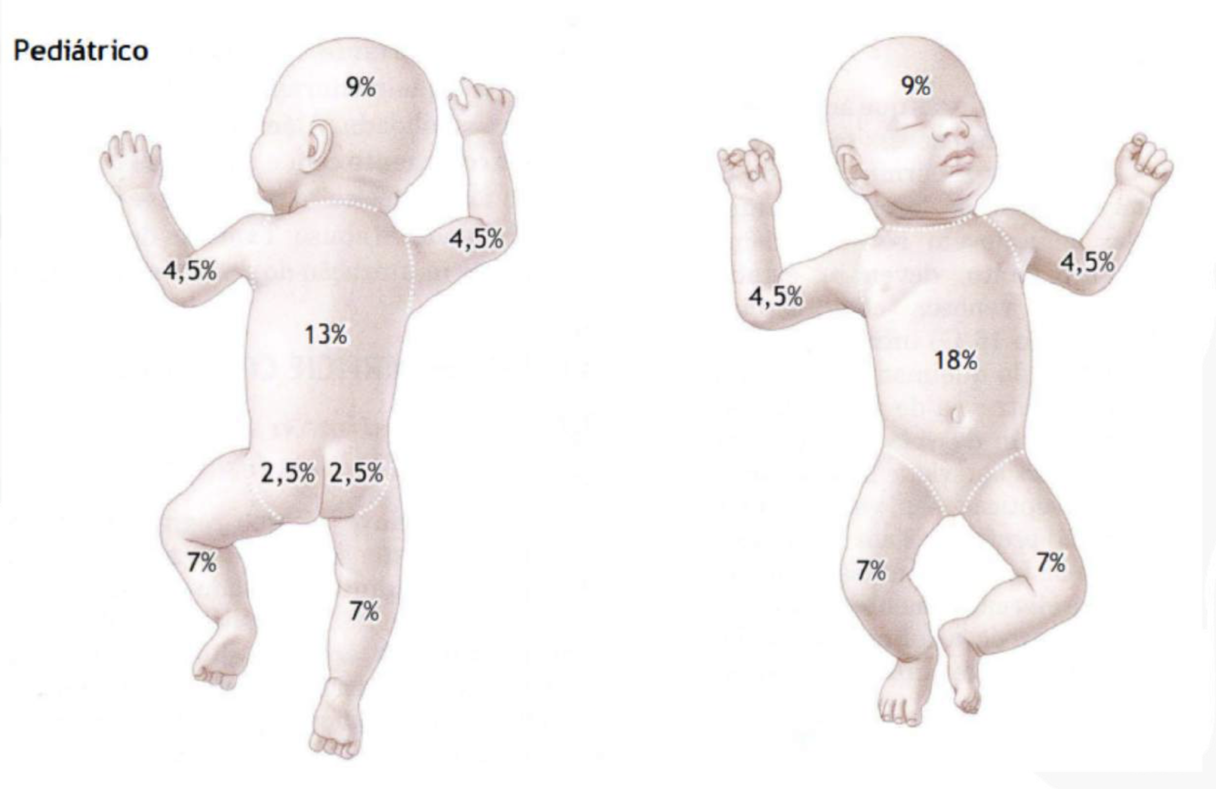 Na criança, qual parte do corpo corresponde a uma porcentagem maior?