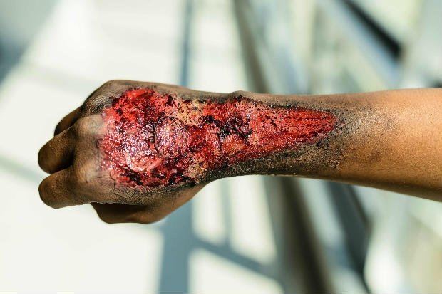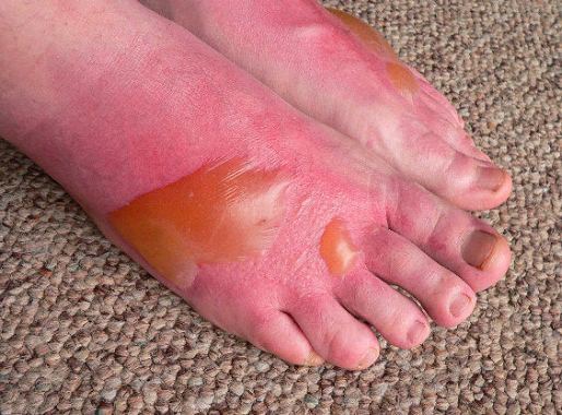 Queimaduras de primeiro grau determinam risco à vida e geralmente necessitam reposição endovenosa de fluidos.
