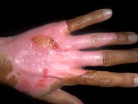 Papilas, eritema, lacrimejamento e bolhas, e MUITO dolorosa