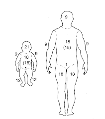 Regra dos 9 em adultos e crianças;