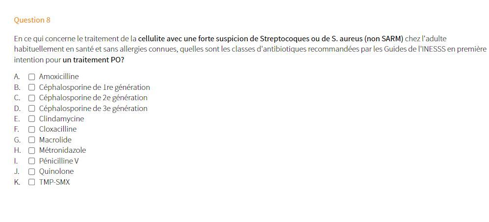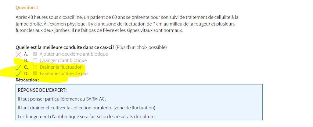 CÉPHALOSPORINE DE PREMIÈRE GÉNÉRATION ET CLOXACILLINE ÉTAIT COCHÉ