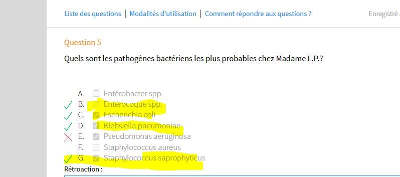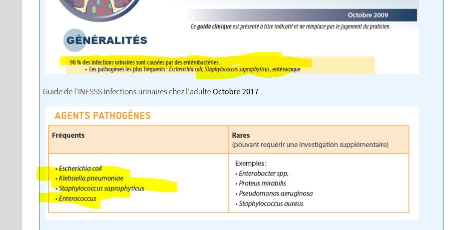 Nomme moi les 4 pathogènes les plus fréquents dans les infections urinaires Chez l’adulte