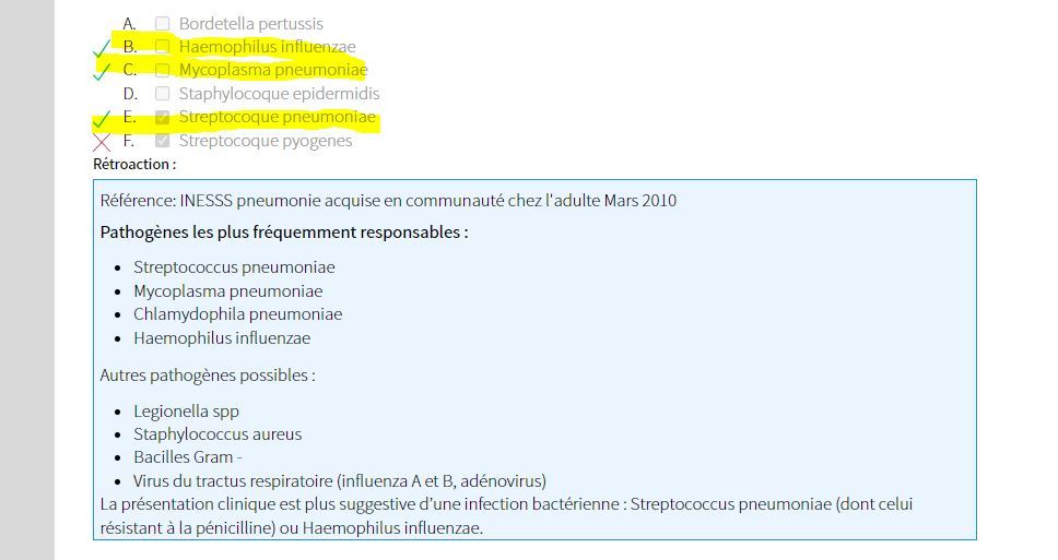 Nomme moi les 4 bactéries pathogènes les plus fréquentes en pneumonie acquises en communauté