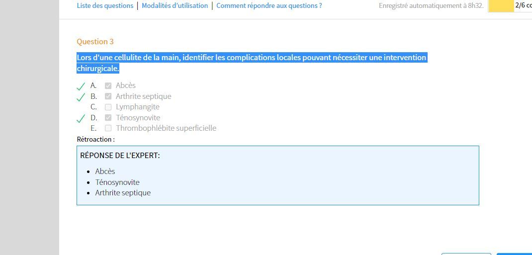 Lors d’une cellulite de la main, identifier les complications locales pouvant nécessiter une intervention chirurgicale.