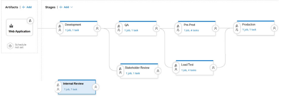 HOTSPOT - You are configuring a release pipeline in Azure DevOps as shown in the exhibit. Use the drop-down menus to select the answer choice that answers each question based on the information presented in the graphic. NOTE: Each correct selection is worth one point.