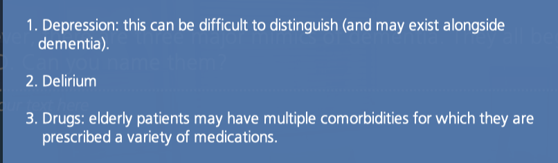 There are 3 major mimics of dementia. What are they? [3]