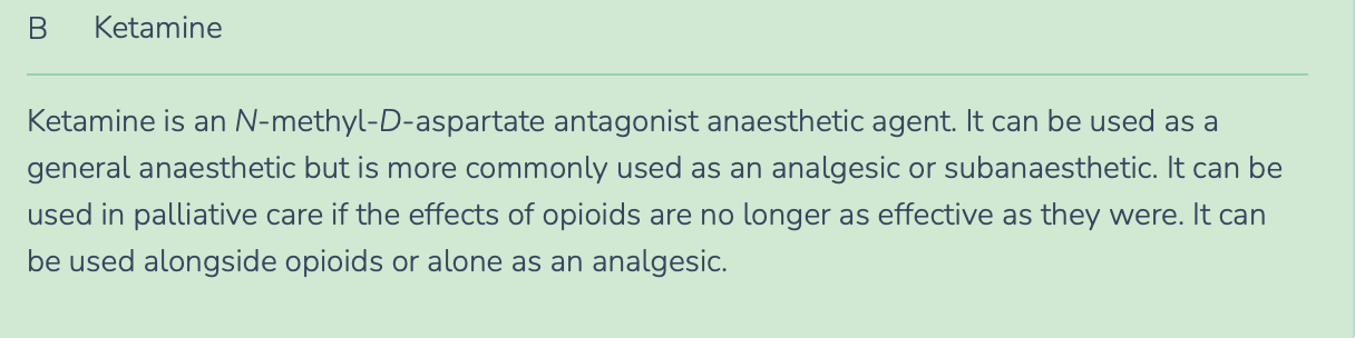 For what type of pain is ketamine used as a second-line treatment in palliative care?